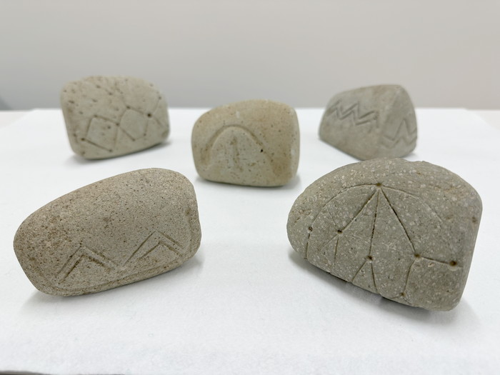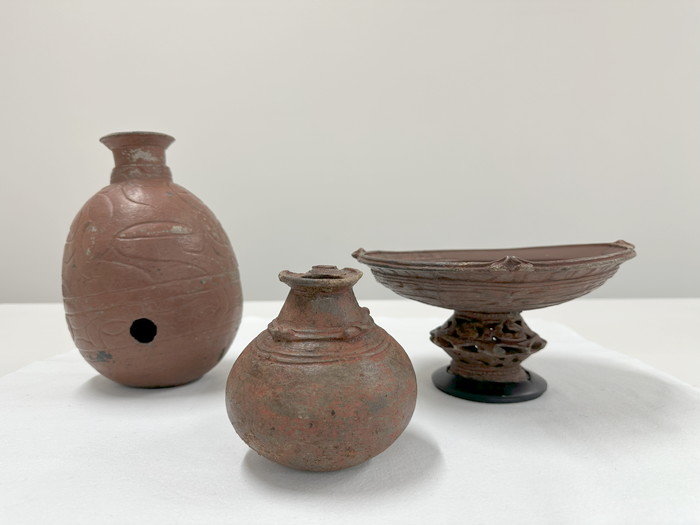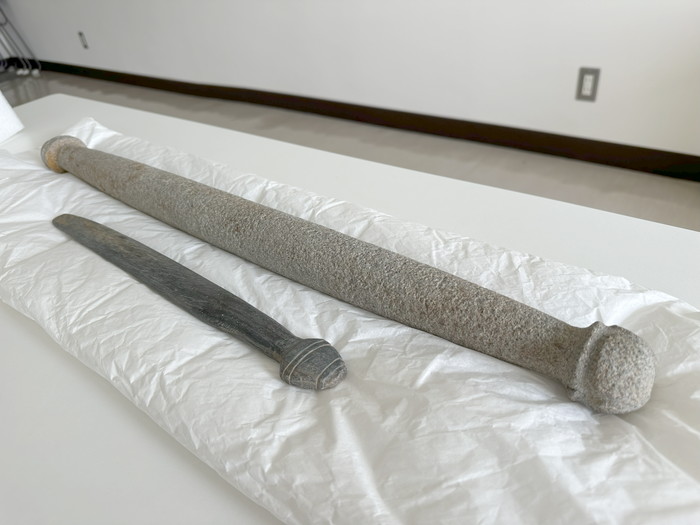 東北歴史博物館の展示 東北歴史博物館 夏季期特別展「世界遺産縄文」で当センターから貸し出した遺物が展示されました。 令和7年7月12日~令和7年9月15日まで展示 東北歴史博物館 のリンクはこちら。 狩猟文土器 西目屋村川原平(6)遺跡 バーを操作すると別の角度から見た画像を表示します。 くま形土製品 青森市三内丸山(6)遺跡 縄文時代後期 (大)石棒 西目屋村砂子瀬遺跡 縄文時代後期 (小)石刀 西目屋村川原平(1)遺跡 縄文時代晩期 線刻付き石冠 西目屋村水上(2)遺跡 縄文時代中期 狩猟文土器 西目屋村川原平(6)遺跡 縄文時代後期 土製耳飾り 西目屋村川原平(1)遺跡 縄文時代晩期 いろいろな土器 西目屋村川原平(1)遺跡 縄文時代晩期 ヒスイ製首飾り 西目屋村川原平(4)遺跡 縄文時代晩期 土面 六ヶ所村上尾駮(1)遺跡 縄文時代晩期